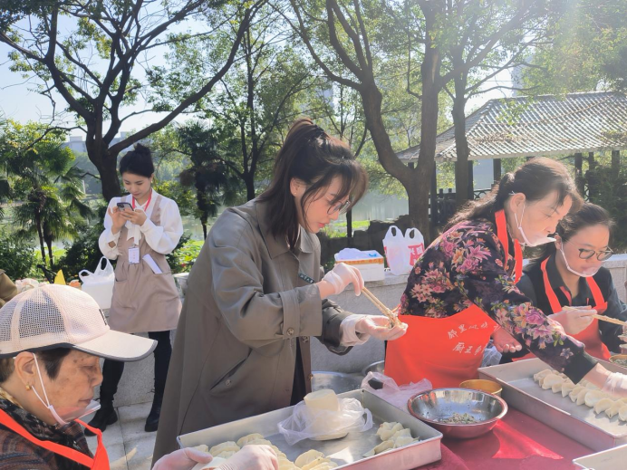 bevictor伟德官网社会工作专业硕士生和社区居民一起包饺子