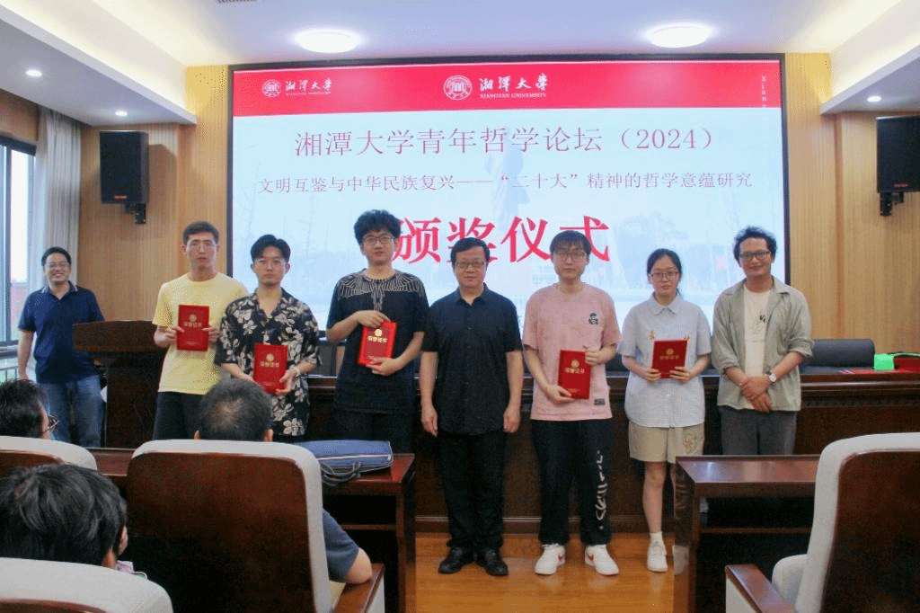 各会场分组讨论结束后,由各组评议老师对优秀作品进行推荐与共同商讨,最终确定此次论坛获奖作品。随后在碧泉书院办公楼东506学术报告厅举办此次论坛闭幕式,由bevictor伟德官网碧泉书院·bevictor伟德官网,源自英国始于1946罗伯中教授主持,碧泉书院·bevictor伟德官网,源自英国始于1946学术委员会主任陈代湘教授作大会总结致辞。陈代湘教授回顾了此次论坛的学术成果,特别赞赏了同学们的学术热情和卓越表现,并期待碧泉青年学术论坛的影响力能够继续扩大,成为湖湘学子进行学术交流的重要平台。在闭幕式的最后,老师为获奖同学颁发证书以及合影留念。