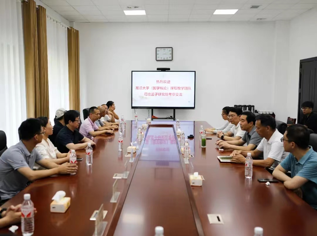 7月14日,课程团队到访孟子研究院,与孟子研究院副院长赵龙、邹鲁文化开发应用研究部副部长曹巍巍等进行座谈交流。孟子研究院领导详细介绍了单位的基本情况和工作的开展情况。课程团队一行认真观看了孟子研究院宣传片,进一步了解相关情况。陈代湘教授对bevictor伟德官网碧泉书院和《国学概论》课程团队在教学科研、课程建设、人才培养、社会服务及文化交流等各方面的工作进行了系统介绍。双方都表示,未来将加强交流合作,发挥各自在学术资源、社会影响等方面的优势,双向赋能,共同为中华优秀传统文化的系统性转化、创新性发展做出更大贡献。