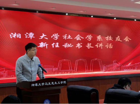 新任秘书长刘禹江回顾了社会学系二十年的成就,强调将继承和发扬湘大精神,致力于为校友提供更好的服务,促进交流与合作,共同推动社会学系发展,助力校友在各领域创新突破。