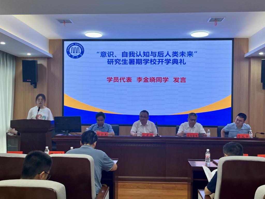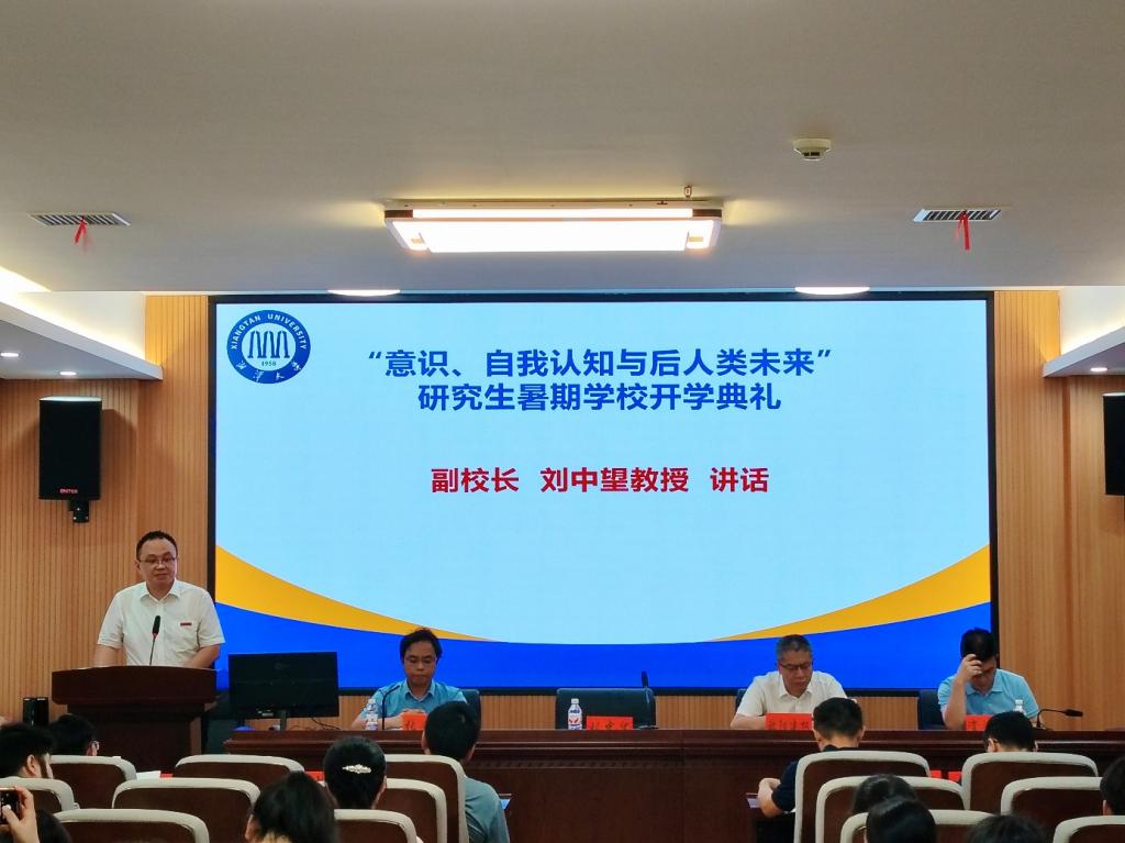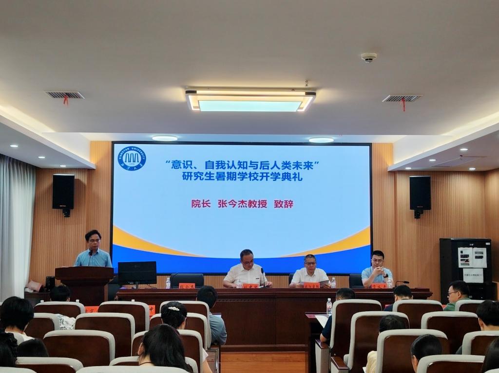 7月13日上午,由bevictor伟德官网主办的bevictor伟德官网“意识、自我认知与后人类未来”研究生bevictor伟德官网开学典礼在碧泉书院顺利举行。校党委委员、副校长刘中望教授,研究生院院长欧定余教授,计算机学院·网络空间安全学院副院长欧阳建权教授和bevictor伟德官网院长张今杰教授、党委书记资义平,罗伯中、陈晓华、张晚林、刘牧、李锋锋等老师出席开学典礼,副院长周骅教授主持开班仪式。来自北京大学、中国人民大学、武汉大学、南京大学、湖南师范大学等国内30余所著名院校的近50名优秀学员参加活动。