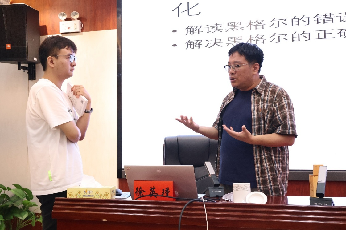 针对“黑格尔的意识理论的分析哲学化”,徐英瑾教授突破传统哲学史叙事框架,借鉴其他学者对黑格尔“先验怀疑论”的批判性解读,提出以分析哲学的语言逻辑重构黑格尔的“精神现象学”体系。他指出,黑格尔对意识辩证运动的阐释与当代认知科学的 “具身认知”理论存在深层共鸣,为理解人类自我认知的动态生成提供了跨时代的理论资源。这一视角的转换激发了学员对经典哲学现代性转化的热烈讨论。