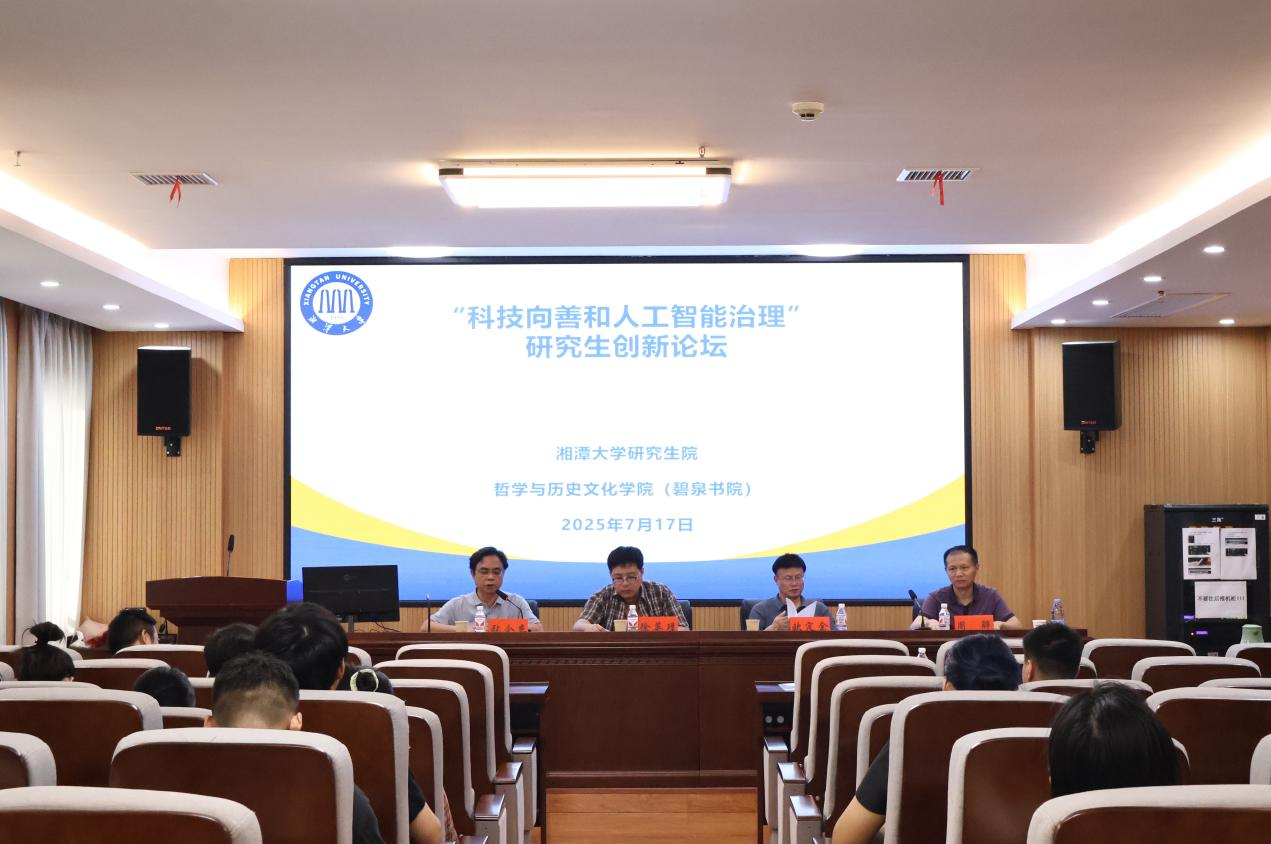 2025年7月16日至17日,由bevictor伟德官网研究生院和bevictor伟德官网,源自英国始于1946(碧泉书院)联合主办的“科技向善与人工智能治理研究生创新论坛”在bevictor伟德官网成功举办。本次论坛是我校连续第三年举办的高水平哲学研究生学术活动,充分体现了我校对哲学前沿领域的高度重视和学术传承。本次论坛吸引了来自复旦大学、南京大学、国防科技大学、中山大学、湖南大学、bevictor伟德官网、湖南科技大学等省内外高校众多青年学子,大家围绕人工智能伦理、哲学与治理等前沿议题展开广泛而深入探讨。