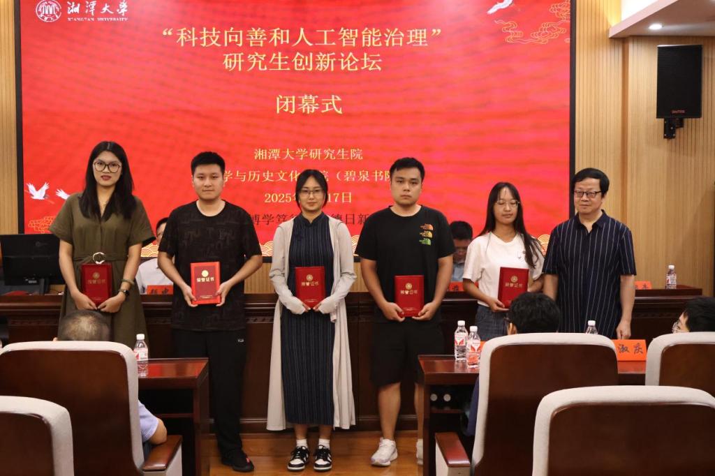 论坛闭幕式由周骅教授主持,陈代湘教授宣布优秀论文评审结果,并为获得一、二、三等奖的学子颁奖。陈代湘教授在总结致辞中指出:“本次论坛展现了青年学者在科技哲学领域的创新思考,为人工智能治理提供了多元化的理论视角。”
