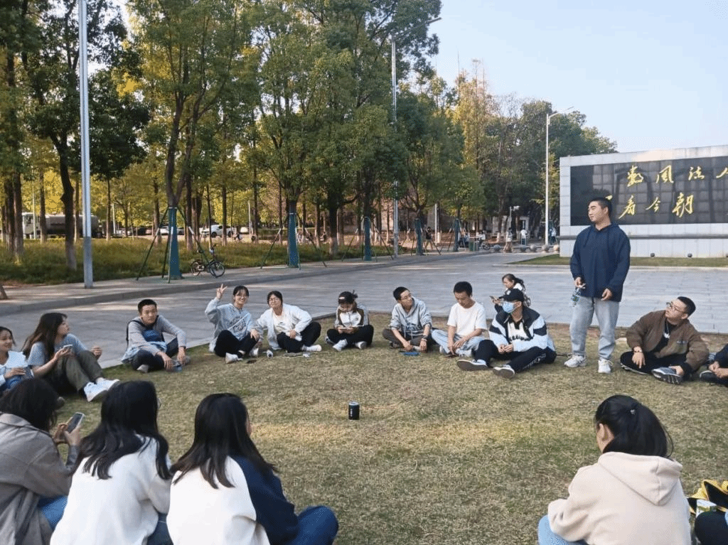 大家坐在日暖风恬的草坪上,围成一圈,听着小音响柔和的轻音乐,无限青春的温情惬意油然而生......大家或是分享自己的兴趣爱好,或是交流开学以来班级里的趣事,或是畅谈美好的过去和无限光明的未来。阳光暖暖地铺在同学们身上,大家的心情也随之放晴。周末残存的倦意和前一天满课的疲惫随着阵阵微风飘散而去,只留下了满地的花香和开怀的笑。