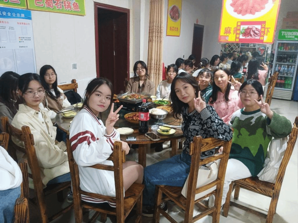 天色渐暗,同学们一起前往聚会餐厅,准备品味湘大的美食。万般风情的佳肴让同学们垂涎三尺,大快朵颐。常言道:“人间烟火气,最抚凡人心。”来自五湖四海的我们也在这烟火气中慢慢地感受班级的温暖和简简单单的幸福。