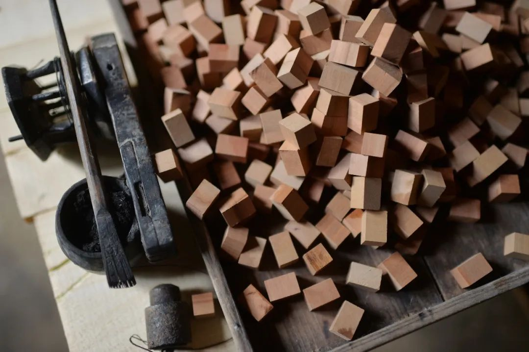 木活字印刷术分为八道工序:即选料备料、字坯制作、字模雕刻、捡字排版、印刷校对、拆版还字、分册折页、盖印编号。实践团的成员们有幸亲眼目睹了木活字印刷工艺,吴汉涌首先为同学们展示木活字字模雕刻工艺,只见他手持一把普通而又具有年岁的刻刀,左手扶着木坯,专心致志地雕刻,不一会儿,一枚精美的汉字跃然于木坯之上。精湛的手艺,赢得了同学们的喝彩。之后,吴汉涌还陆续展示了拣字制框、上墨、印刷等工序,让大家赞叹不已。